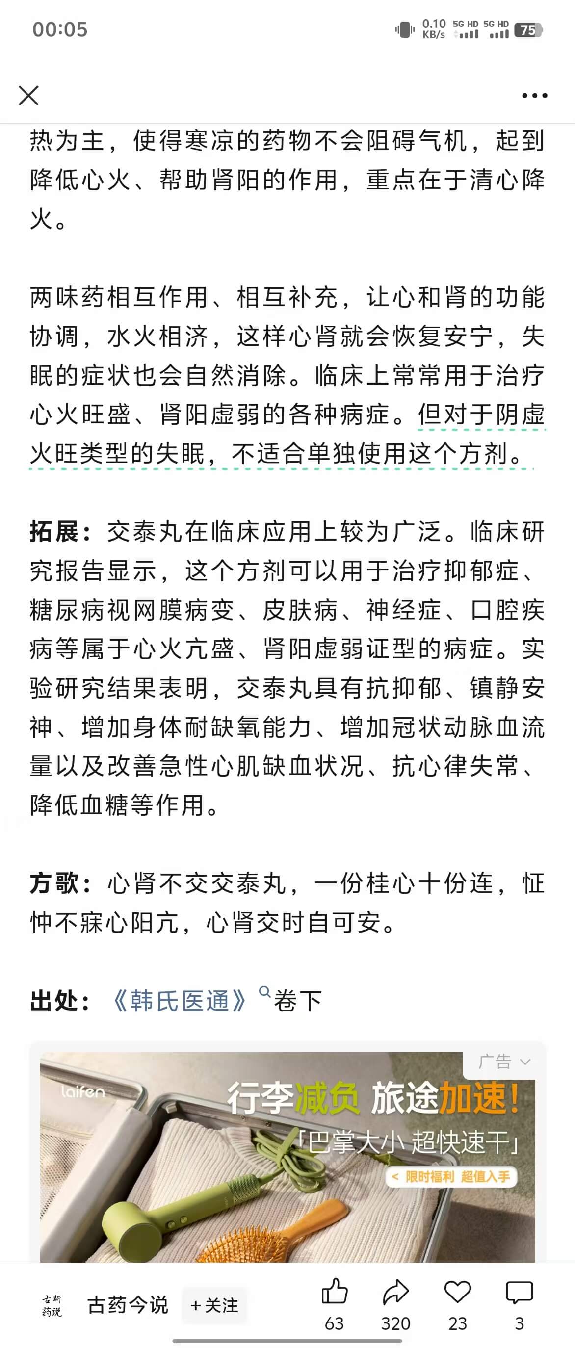交泰丸治疗失眠真的是超级好。