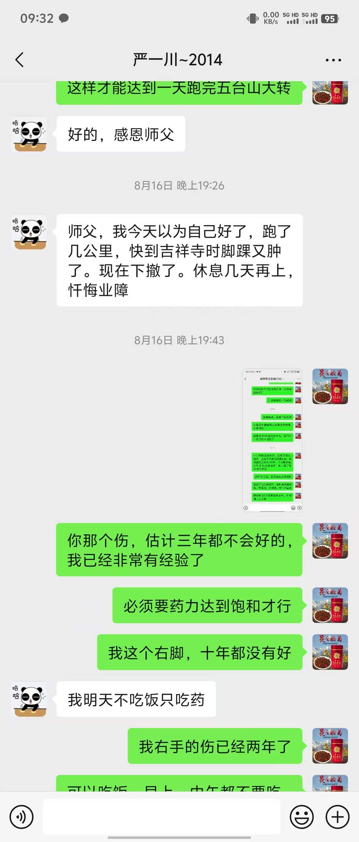 雪峰就比较听话,他480圈的时候,我让他吃花胶,他就每天吃花胶,后来安全渡过500圈,而且现在体力也很好。