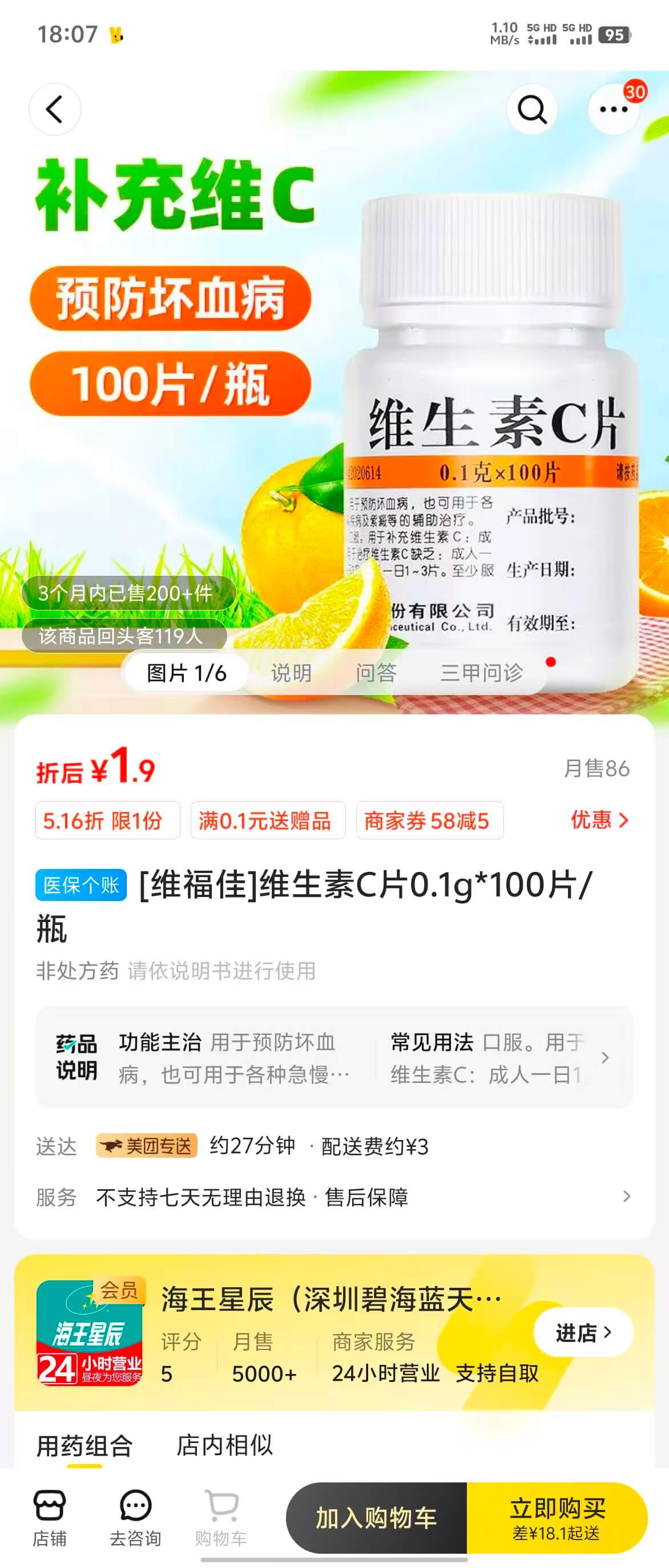 比如我昨天今天摄入已经超过一克的维生素C。