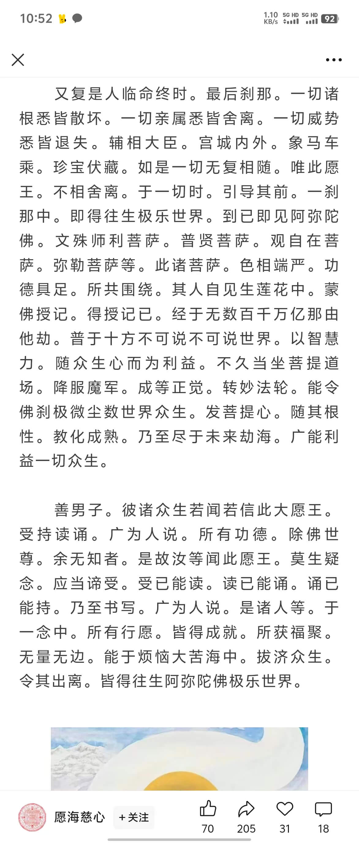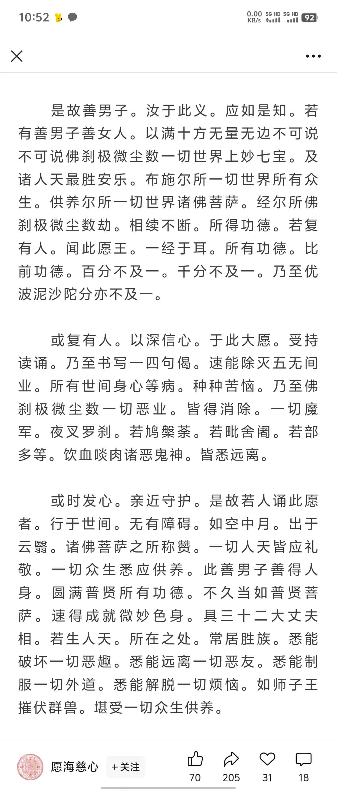 金刚经念诵到满级以后,还需要修炼普贤行愿品。