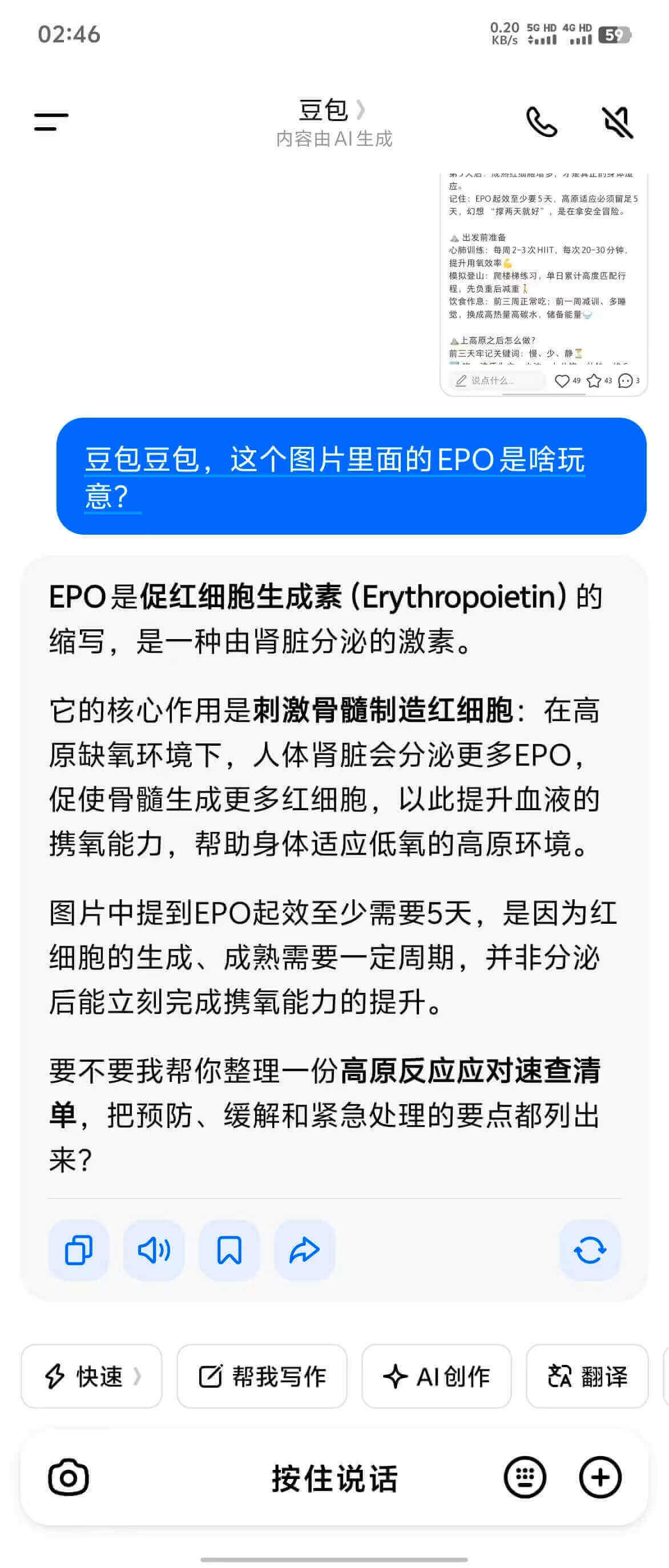 你的肾气足够强大,你在海拔6000以上才会有力气爬山。