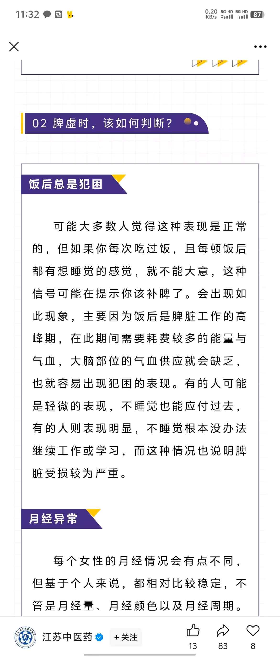 吃完饭就特别想睡觉,这种情况,就是脾虚。