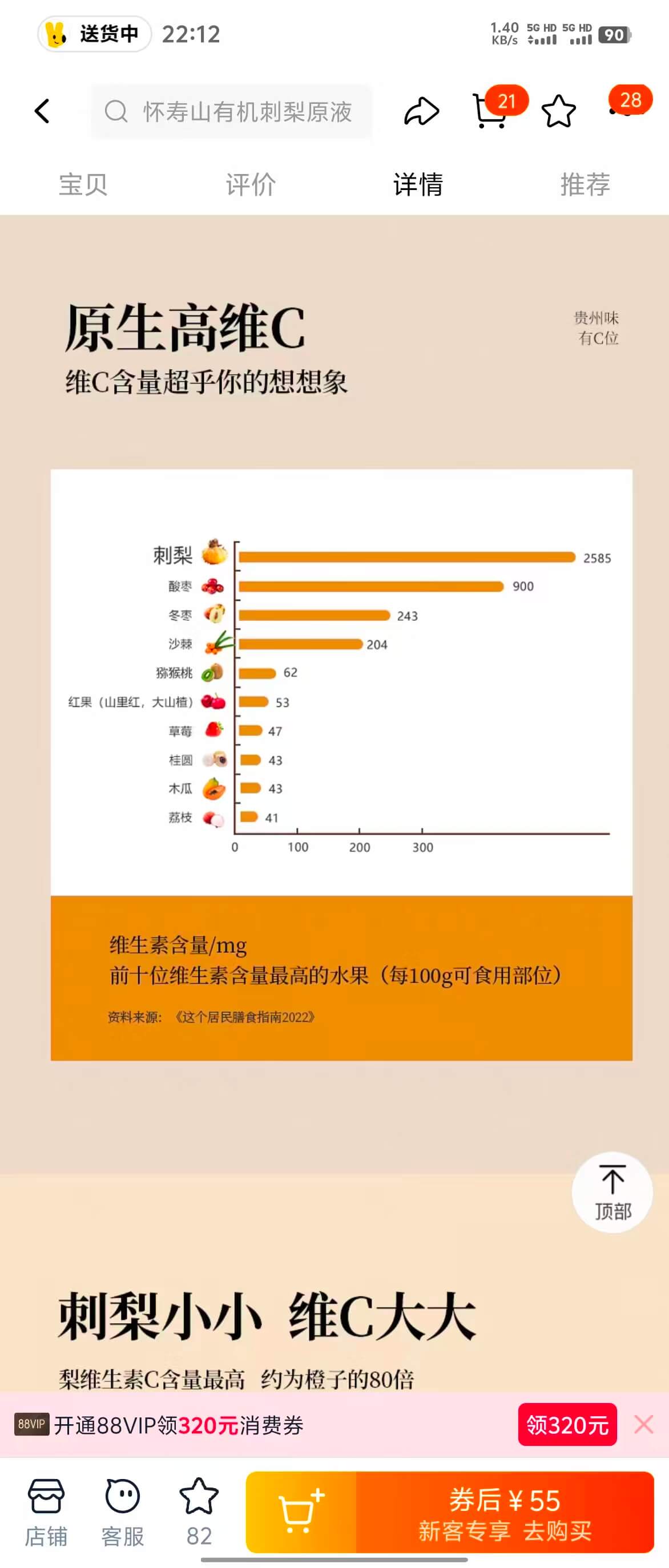 这个太甜了,今天摄入维生素C大概1.3克。