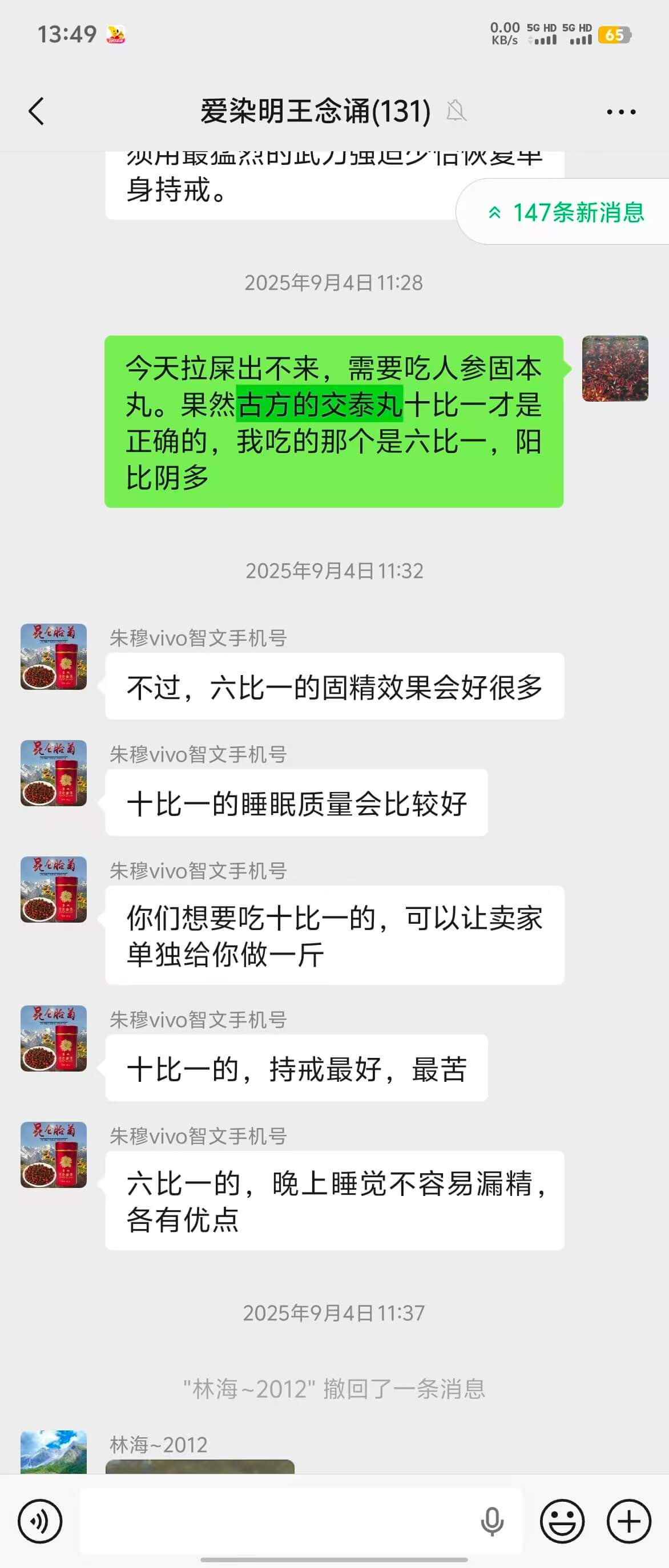 超群:师父,是不是和体内能量层级也有关啊,下丹田充满气后会感觉淫欲很旺,但感觉真气刺激到大脑和中丹田,念力增强后,持戒又容易很多。